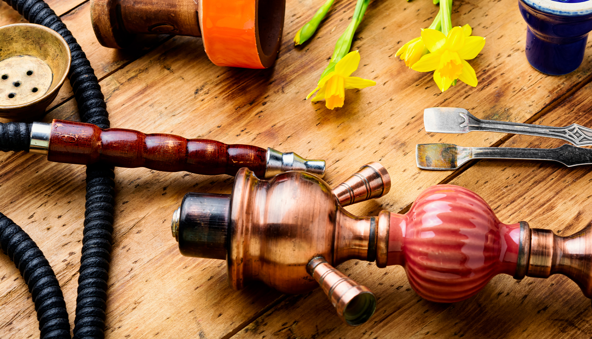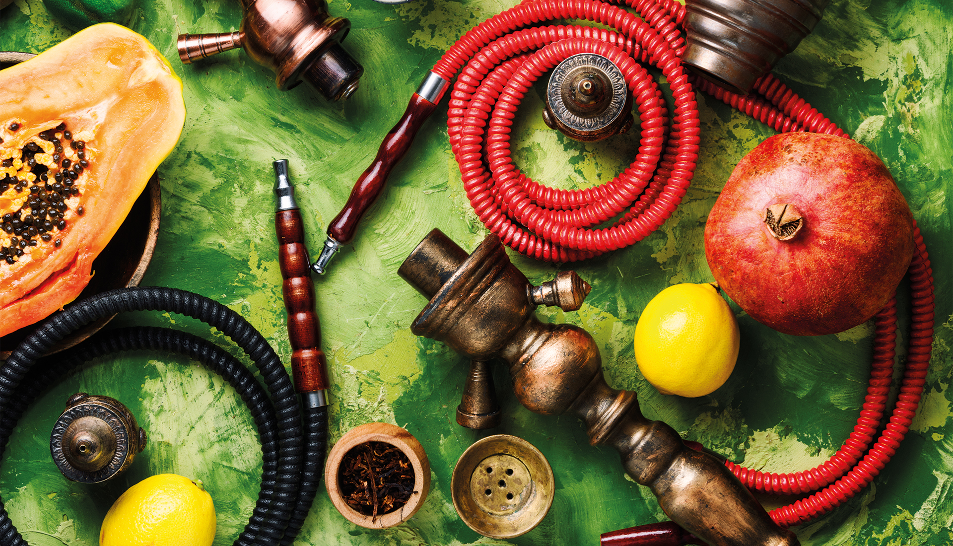 The jar at the bottom of the hookah is filled with water sufficient to submerge a few centimeters of the body tube, which is sealed tightly to it. Deeper water will only increase the inhalation force needed to use it. Tobacco or tobacco-free molasses are placed inside the bowl at the top of the hookah. Often the bowl is covered with perforated tin foil or a metal screen and coal placed on top. The foil or screen separates the coal and the tobacco, with the foil and the tobacco reaching maximum temperatures of 450 and 130 degrees Celsius respectively...